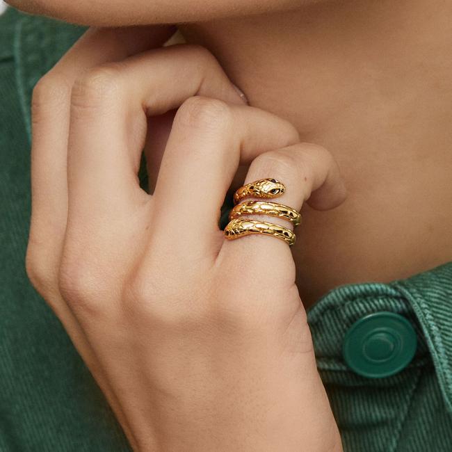 Vous pouvez également signer cette option Parfois. Il s’agit d’un anneau en forme de serpent qui forme trois anneaux qui entourent le doigt. Il est en acier, pour le petit doigt et coûte 19,99 euros.