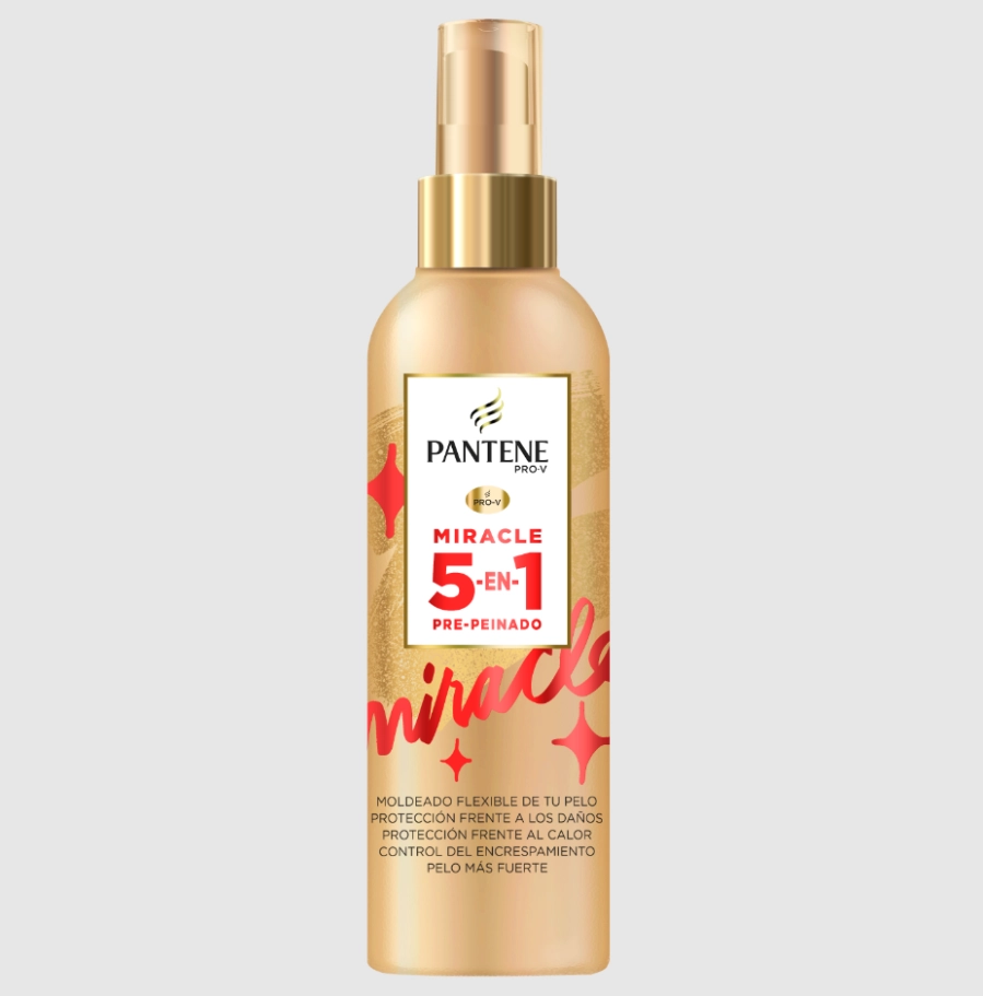 Miracle 5 en 1, de Pantène. Un produit coiffant qui répare les obligations capillaires grâce aux agents de conditionnement, à l’huile de noix de coco et à la provitamine du panthène classique. Il agit également comme un protecteur de la chaleur thermique (9,99 €).